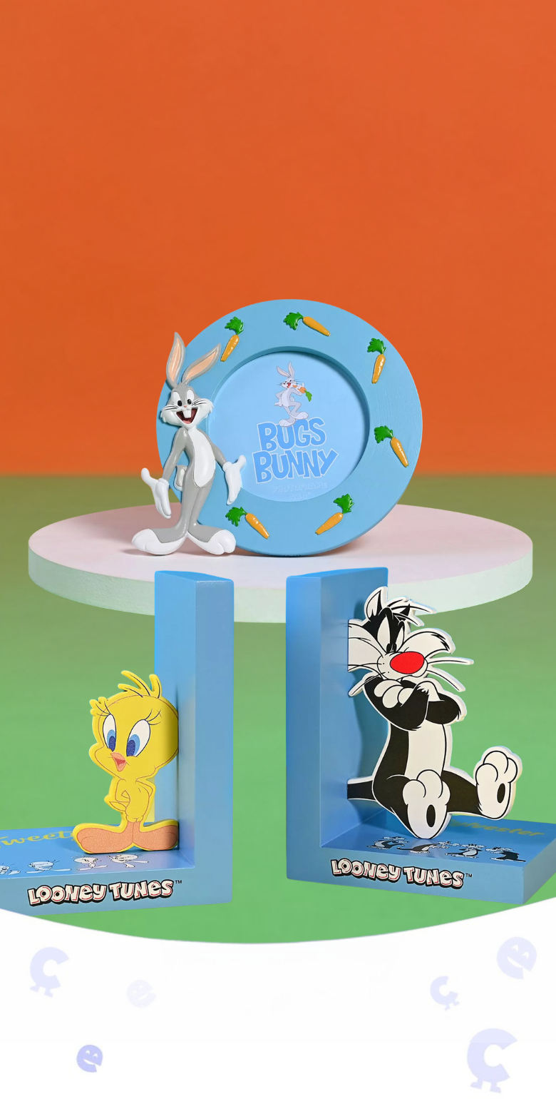 View full detailsAdd nostalgic charm to your bookshelf with our Warner Bros Looney Tunes Tweety and Sylvester Wooden Bookends. These beloved characters, captured in...