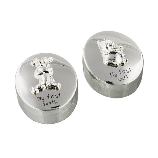 DisneyIn stockA stunning Disney Winnie the Pooh silver plated tooth and curl set designed to be kept as a beautiful keepsake. The 'My First Tooth' holder is ador...